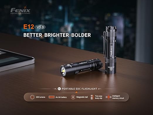 【Çoklu Pil Uyumluluğu】E12 V3.0, maksimum rahatlık için kapatıldığında güç kullanmadan AA Alkalin, Ni-MH ve 1.5V 14500 lityum pillerle (Fenix ARB-L14-1600U gibi) uyumludur.