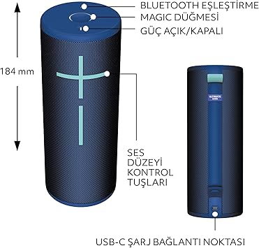 Dayanıklı yapı: IP67 su geçirmezlik derecesine sahip ve 15 metreden düşmeye dayanıklı BOOM 4 Bluetooth hoparlör su üzerinde yüzebilir. PartyUp özelliği: Ultimate Ears BOOM uygulamasındaki PartyUp özelliği ile birden fazla BOOM, MEGABOOM, EVERBOOM, EPİCBOOM ve HYPERBOOM taşınabilir Bluetooth hoparlörü eşleştirerek surround ses deneyimi yaratın