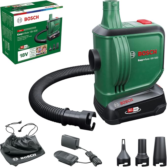 EasyInflate 18 V-500 hava yatağı için elektrikli hava pompası/hava pompası (1 x 2,0 Ah akü; 18 Volt sistem; şişirmek ve boşaltmak için; kartonda)