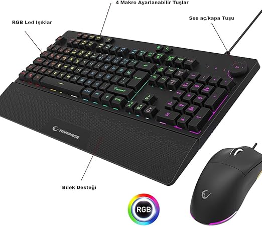 Eclipse Siyah Usb RGB Aydınlatmalı Q Gaming 4 Tuş Makrolu Oyuncu Klavye Mouse Set