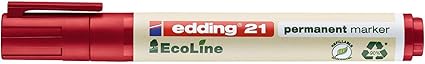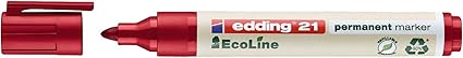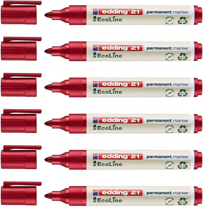 1 EcoLine kalıcı keçeli kalem kırmızı renkte; plastik kalemler minimum %90 geri dönüştürülmüş malzemelerdir; tekrar doldurulabilir