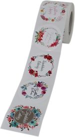 Ederiz Etiketi 5 Farklı Çiçek Deseni 50mm Çap Ruloda 500 Adet Kendinden Yapışkanlı Rulo Etiket, PP Opak E-ticaret
