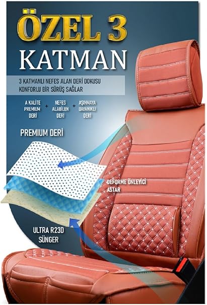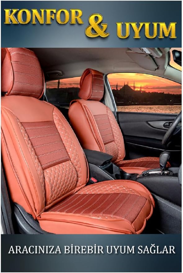 Egea Cross ile Uyumlu Lüx Deri Oto Koltuk Kılıfı Ön Arka Takım Safir Tarçın