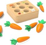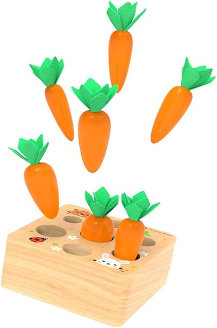 Eğlenceli Sıralama Oyunu: Havuç hasadı, yeni yürümeye başlayan çocuklar için yeni bir eğitim oyuncağıdır. Oynaması kolay görünüyor ama çocuklar için bir meydan okuma. Küçük beyinlerinin çalışmasını izleyin ve havuçları doğru boyuttaki deliklerle eşleştirmeye çalışın. ÇOCUK AVANTAJI: Bu tahta oyuncakla oynarken çocuğunuz ayrıca ince motor becerileri, el-göz koordinasyonu, şekil tanıma ve el becerisi geliştirecektir. Kişisel becerileri eğitmek ve geliştirmek için mükemmeldir
