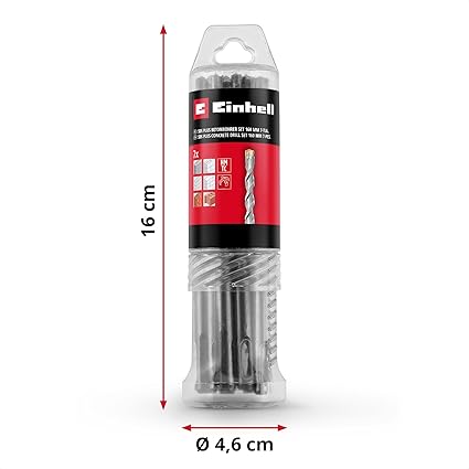 Einhell 7-Parça SDS Plus Uç Seti, 160 mm (Dört Kenarlı Karbür Plakalı 40Cr Takım Çeliğinden Yapılmıştır, Merkezleme Ucu, Tadilat veya Betonla İlgili Sabitleme İşleri için) – 49265510