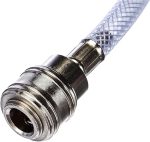 Bağlantı – Kumaş hortum, pnömatik aletleri bağlamak için bir R 1/4″ hızlı bağlantı ve kompresöre bağlanmak için bir geçmeli nipel ile donatılmıştır