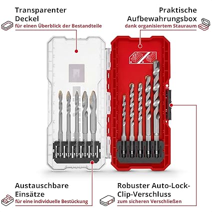 Einhell S-CASE 10-Parça Seramik Matkap Ucu Seti (Özel Taşlanmış Karbür Plaka, Merkez Nokta, Çift Helezon, E 6.3 Şaft, Saklama Kutusu Dahil) – 49051410