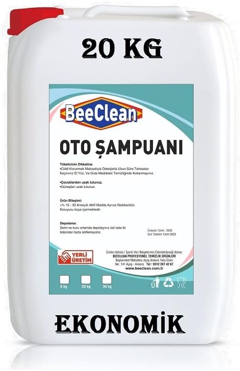 BeeClean;EKONOMİK 20 Kg Oto Yıkama Şampuanı Araç – Araba – OtomobilTEMİZLEME ÜRÜNÜ Bidon dahil 20 Kg gelmektedir