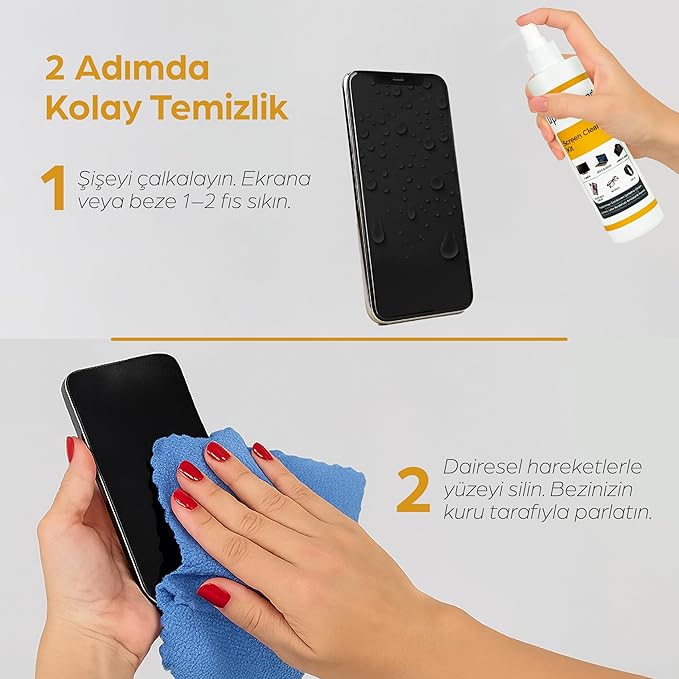 Kolay Uygulama: Spreyi doğrudan ekrana veya önce mikrofiber beze sıkarak kullanabilirsiniz; çizmeden ve iz bırakmadan temizlik sağlar.