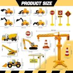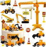 Ekskavatör pasta dekorasyonu, 21 adet, şantiye pasta dekorasyonu, 2 yaş doğum günü, kamyon buldozer Cupcake Topper, inşaat, trafik, sokak işareti temalı pasta dekorasyonu, erkek ve kız