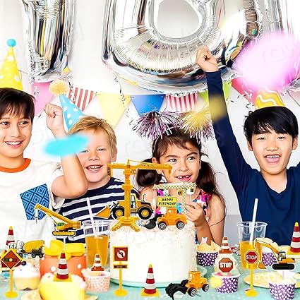 Ekskavatör pasta dekorasyonu, 21 adet, şantiye pasta dekorasyonu, 2 yaş doğum günü, kamyon buldozer Cupcake Topper, inşaat, trafik, sokak işareti temalı pasta dekorasyonu, erkek ve kız