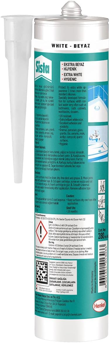 Standart silikonlara göre 3 kat daha fazla beyaz görünüm ve ekstra parlaklık sağlayan banyo, duş kabini, gibi su ile sürekli temas eden yüzeyler için uygundur.