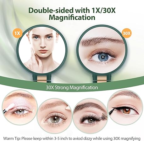 ❤️30X Büyüteçli Ayna: 30x büyütme size hayal edilemez bir sürpriz verecek, gözlerinizin ve yüz cildinizin tüm kusurlarını bulabilir ve işlerin temizlenmesinde ve onarımında size yardımcı olabilir. Örneğin, temas takmak, sahte kirpikleri yapıştırmak ve kaşları ve bıyıkları koparmak ve diğer hassas görevler.
