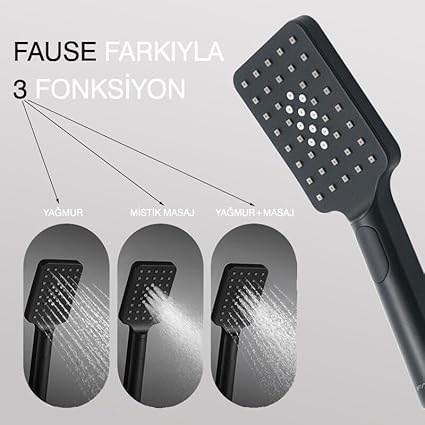 El Duş Başlığı 3 Fonksiyonlu Kare KE122 (Siyah)