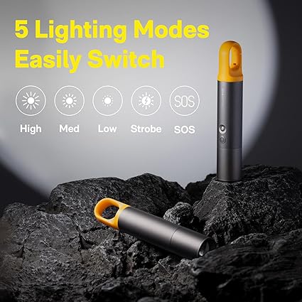 El Feneri Lite, Yakınlaştırılabilir LED, USB-C Şarj Edilebilir, 1000 Lümen Taktik, 5 Mod (SOS ve Strobe), Kamp, Acil Durumlar, Ev Kullanımı İçin Taşınabilir