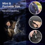 Yüksek beyaz ışık – düşük beyaz ışık – SOS – yüksek ultraviyole ışık Yakınlaştırma/uzaklaştırma – 2’si 1 arada LED el fenerimiz görüş alanını ayarlar ve kontrol eder Ürünün ana gövdesini döndürmek dairesel bir spot ışığı seçer ve geniş alan aydınlatması için kullanır Ya da uzaktan görüntüleme için parlayan bir far kullanın
