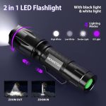 El feneri, UV feneri, 2’si 1 arada UV lamba, LED el feneri, 395 nm ultraviyole el feneri, 4 mod, sahte banknotlar, köpek idrarı ve diğer evcil hayvanlar için dedektör