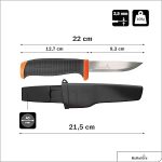 El işi bıçağı HVK GH I çok amaçlı bıçak, kaymaz Santoprene® saplı ve birinci sınıf karbon çelikten bıçak I İş pantolonu için kılıf ve tutucu dahil I 380210