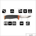 Malzeme – Bıçak ağzı birinci sınıf karbon çeliktendir. Bıçak birkaç adımda bilenir ve ardından özellikle keskin hale getirmek için deri üzerine çekilir. Sap ve kılıf uzun ömürlü polipropilen plastikten üretilmiştir. Sapın Santopren kaplaması kaymadan güvenli bir çalışma sağlar.