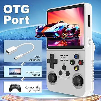 El Oyun Konsolu, Retro El Video Oyun Konsolu 3.5 inç IPS Ekran Açık Kaynak Linux Sistemi Dahili 15000+ Oyun, 32G+64G TF Kart, Beyaz