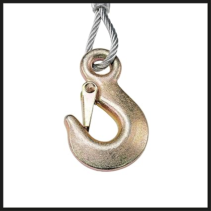 El vinci, emniyet kapaklı bir yük kancası ve 10 metre uzunluğunda, bükülmez bir çelik halata (Ø 42 mm) sahiptir