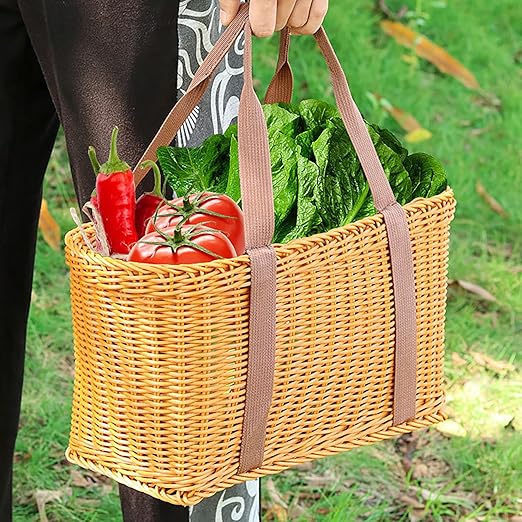 El Yapımı Hasır Çanta, Hasır Dokuma Tote Meyve Çiçek Teşhir Kutusu Mağaza Çeşitli Eşyalar Atıştırmalıklar İmitasyon Rattan Kamp Sepeti Açık Hava Kampı için (L)