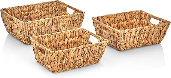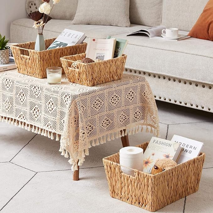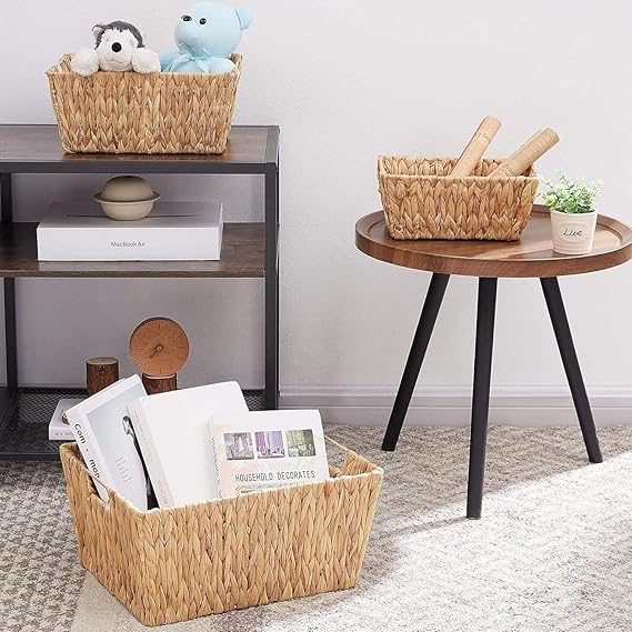 El Yapımı Hasır Dikdörtgen Dekoratif Sepet, Hasır Dikdörtgen Dekoratif Tepsi 3 Model Seçenekli (34 * 26 * 13cm) (ORTA)