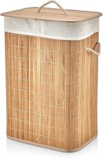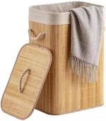 El Yapımı Hasır Katlanır Çamaşır Sepeti Dikdörtgen 72 Litre (40cm*30cm*61cm), Doğal Malzemeden Üretilmiş Çamaşırlık, Bambu Kirli Çamaşır Sepeti