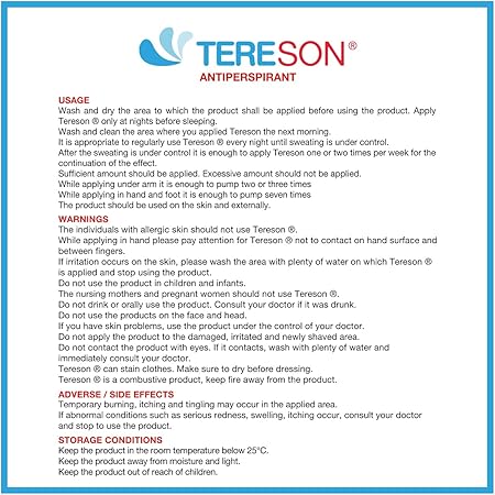 Tereson aşırı terlemeyi önlemeye karşı özel olarak geliştirilmiş etkili bir sprey antiperspiranttır. Koltuk altı, ayak ve el terlemelerinde kullanım için idealdir