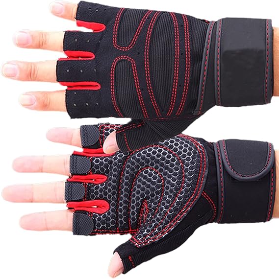 Eldivenleri Fitness Eldivenlerini Önler Kırmızı Ağırlık Kaldırma M.