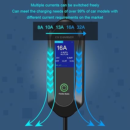 【Hızlı ve AKILLI Şarj 】CEE 3PIN fişli bu Tip 2 elektrikli araç şarj cihazı, 8/10/13/16/32A ayarlanabilir akıma izin verir ve aracınızı evinizin rahatlığında hızlı ve verimli bir şekilde şarj edebilen 7kW şarj gücü sağlayabilir. Elektrikli arabanızın şarj süresini kısaltın!Not: Dahil edilen adaptör kablosunun şarj akımı 16A’ya kadardır. Bu 16A fişini kullanmadan önce akımı ayarlamanız gerekir. Üründeki orijinal 3PIN konnektörünü kullanarak yalnızca 32A’ya ayarlayabilirsiniz. Lütfen kullanmadan önce hat akımını doğruladığınızdan emin olun.