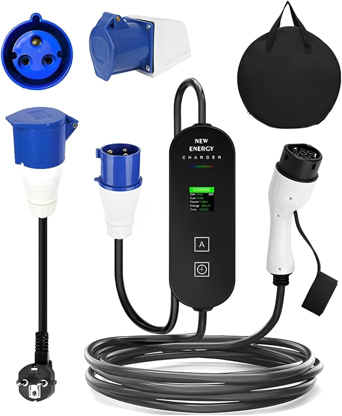 Elektrikli Araç Şarj Cihazı Type 2 Şarj Kablosu CEE Fişi 8-32A 7KW LCD Ekranlı Tek Fazlı 3PIN EV Şarj Cihazı Çantalı Taşınabilir EV Şarj Cihazı (5M)