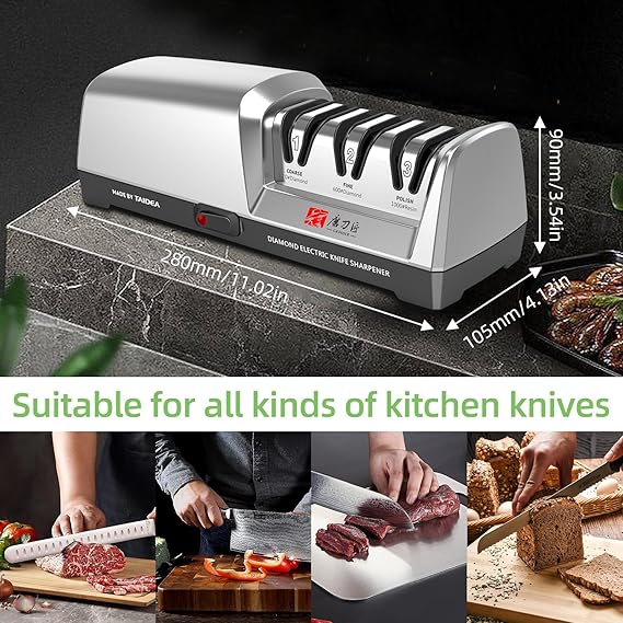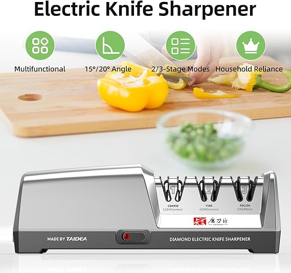 Elektrikli Bıçak Bileyici – 2800rpm Yüksek Hız, 15°/20° Ayarlanabilir Açılar, 2/3 Aşamalı Premium Aşındırıcılar, Seramik Bileme Taşı – Verimli, Dayanıklı ve Kullanıcı Dostu Mutfak Aleti
