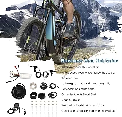 Paket İçeriği: Elektrikli bisiklet dönüştürme kiti, 36V 500W arkadan tahrikli döner motor, 22A kontrol cihazı, GD06 aleti, 130X parmak kadranı, güçlendirici, güç kapalı fren kolu çifti, jant telleri, kollu somun, kurulum araçları ve talimatları içerir.