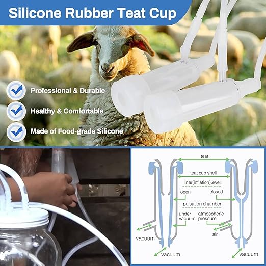 NABIZLI SAĞIM: Vakumlu nabız, kuzu emmeyi simüle etmek, meme ucunun üstünde ve altında pedleri çökertmek, meme ucuna masaj yapmak ve normal kan akışını korumak için en son teknolojiyi ve profesyonel tasarımı benimser. Sağım sırasında koyunlarınıza zarar vermez ve rahat bir sağım deneyimidir.