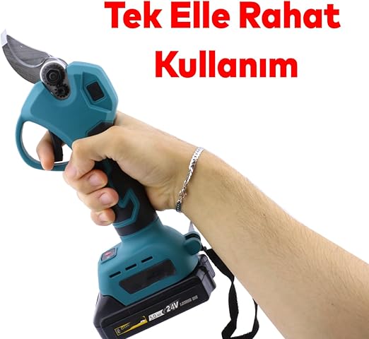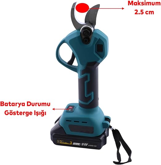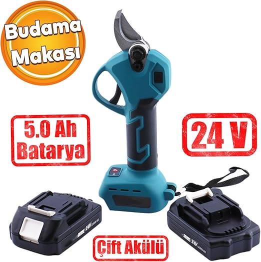 Elektrikli Şarjlı Çift Akülü Budama Makası Dal Kesme 5.0 AH 24 V Kömürsüz Bağ Üzüm Çubuk Budama