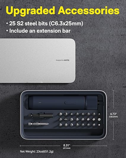 TEK EL GÜÇ EVİ, TOPLAM KONTROL – Mini matkapla avucunuzun içinde üç tork ayarı elde edersiniz. (Elektrik modu: maks. 4 N·m / Manuel mod: maks. 8 N · m). Ve o yerleşik akıllı sensör? O senin koruyucu meleğin. Düğmeyi serbest bırakın, döndürme durur – çizik vida yok, yaralanan parmak yok. Sadece bir el ve tam kontrol sizde