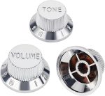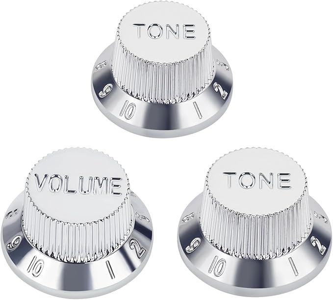 Elektro Gitar Kontrol Düğmeleri 2 Ton ve 1 Ses Düğmeleri Hız Düğmeleri Üst Şapka Metrik 6 mm (15/64 inç) 18-Spline Squier Strat Elektro Gitarlar için 3’lü Paket JT/XN-04 Krom