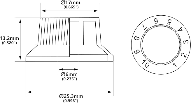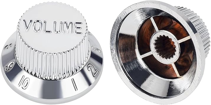 Uyumluluk: Bu metrik 18 spline çan şeklindeki düğmeler, Alpha gibi ünlü markalar da dahil olmak üzere Asya’da üretilen potansiyometreler için uygundur. MIJ Fender, Squier (Çin/Japonya/Endonezya’da üretilmiştir), lbanez, ESP, Cort gibi strat tarzı elektro gitarlarla uyumludurlar. İmparatorluk 24 spline potlu Amerikan/Meksika gitarları için DEĞİL.