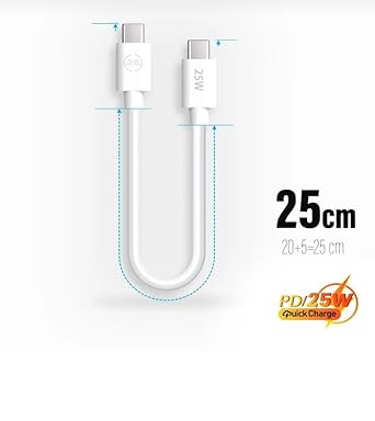 Beyaz renk. Çift tarafı type c Pd Şarj Kablo 25-30 cm