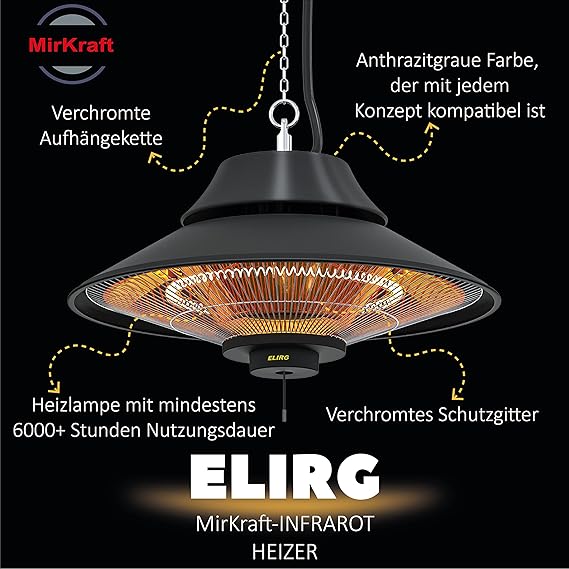 Elirg Elektrikli Isıtıcı, 2000 W,Manuel Kontrol,IP45, Balkon Isıtıcısı, Çadır Isıtıcısı, Kış Bahçesi Isıtıcısı, Karbon Kızılötesi Isıtıcı (Elirg)