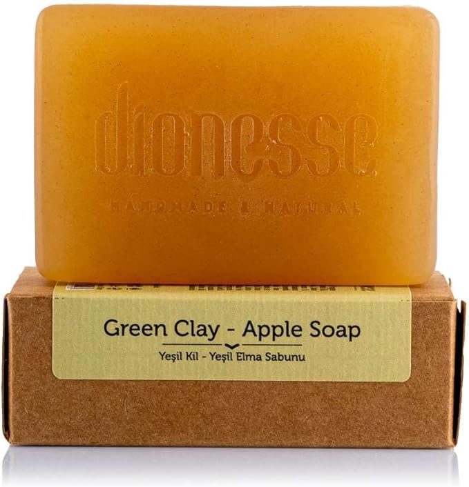 Elma Kabuğu Yağlı Yeşil Kil Sabunu 120 gr | Yağlı ve Akneli Ciltler İçin Doğal Kil Sabunu
