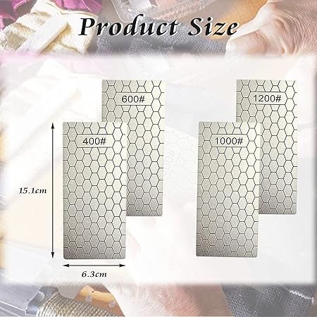 【Teslimat kapsamı】: 1 set elmas bileme taşı, 400, 600, 1000, 1200 granülasyonlu 4 farklı model, ürün hacmi 151 x 63 x 2 mm’dir, taşıması kolaydır ve ev ve dış mekan mutfak aletlerini bilemek için kullanılabilir.