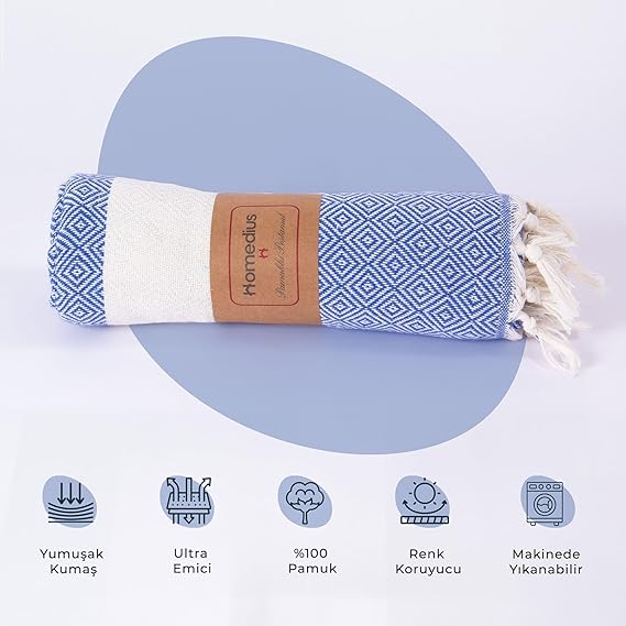 Elmas Desenli Diamond Pamuk Peştamal Banyo ve Plaj Havlusu 100×180 cm Mavi 100×180Uygunluk: 9 adet stokta