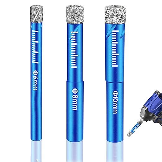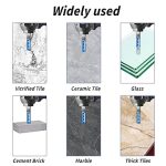 Yüksek kaliteli elmas matkap uçları: Keskin taşlanmış ve son derece sert elmaslarla elmas matkap ucu profesyonel, temiz ve hızlı delme sağlar. Yüksek kaliteli endüstriyel elmaslar sayesinde karo matkabı hızlı bir kesme hızına sahiptir.