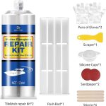 elyaf onarım seti, fayans onarım seti – 100 ml su geçirmez jelcoat onarım seti, tekne, yat, akrilik, seramik lavabo onarım seti, çiziklerin, deliklerin ve çatlakların onarımı için