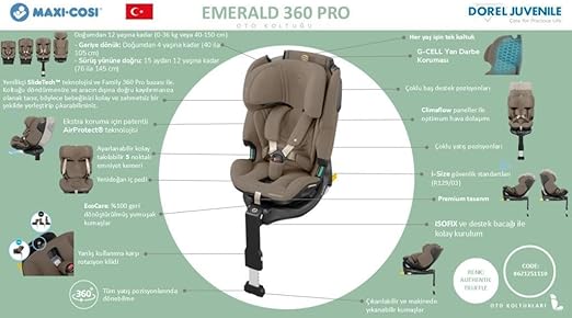 Emerald 360 Pro I-Size Dünyanın İlk Kızaklı, Araç Dışına Çıkabilen İsofix’li 360 Dönebilir Yatabilir 0-36 kg Bebek Oto Koltuğu Authentic Truffle