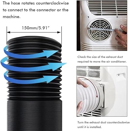 Yüksek Uyumluluk: Klima hortumlarımız saat yönünün tersine dişlere sahiptir, klima hortumlarımız 5,9 inç çapındadır ve birçok taşınabilir klima için uygundur.
