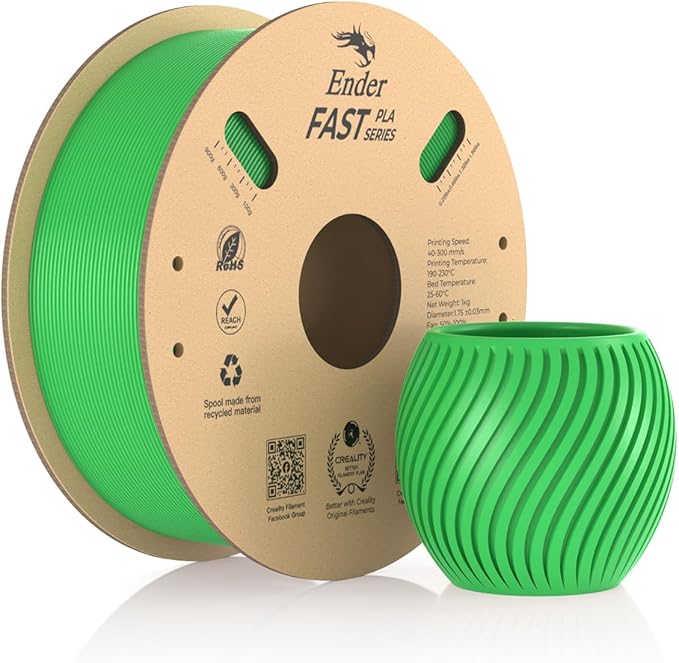 Ender Fast PLA Filament 1,75 mm, 3D Yazıcı Filament 300 mm/sn’ye kadar Yüksek Hız, Geri Dönüştürülebilir Karton Makara, Çoğu FDM 3D Yazıcıya Uygun – 1 kg (2,2 lb) Yeşil