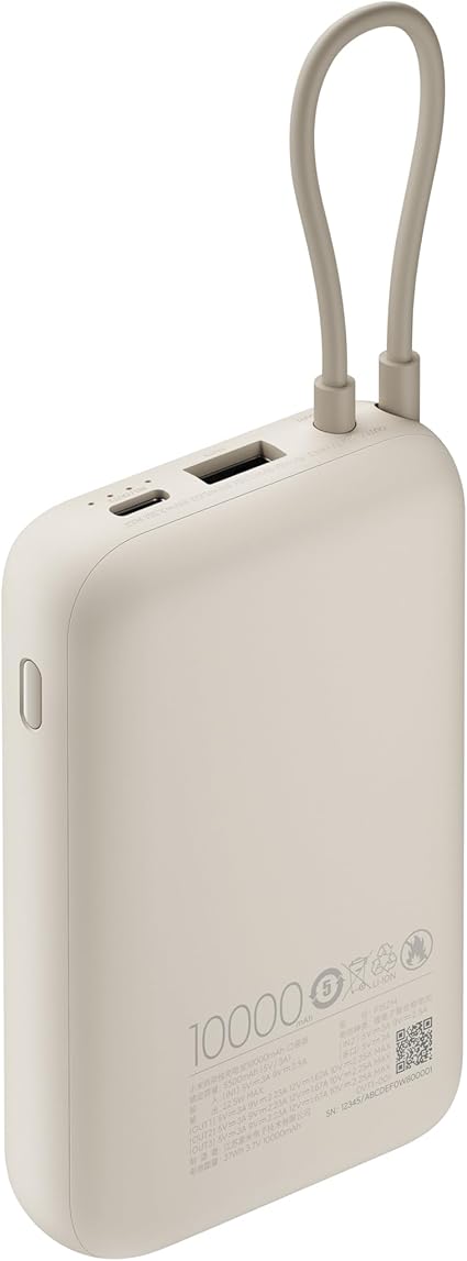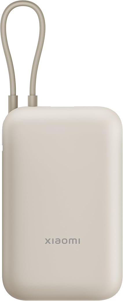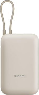 Entegre kablolu 33 W Power Bank – 20000 mAh, hızlı şarj fonksiyonu, aynı anda 3 cihazı şarj eder, uçuşa uygun, 5,5 saat içinde tamamen şarj edilebilir – şık ve pratik, bronz